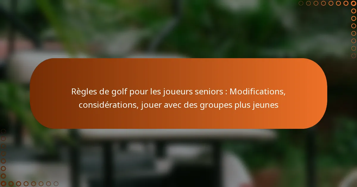 Les règles de golf pour les joueurs seniors intègrent souvent des modifications pour tenir compte des changements liés à l’âge en matière de capacités physiques, améliorant ainsi à la fois le plaisir et la compétitivité. Ces ajustements prennent en compte des facteurs tels que la mobilité et la force, qui peuvent influencer la performance sur le parcours. En choisissant un équipement approprié et en comprenant les considérations uniques pour les golfeurs seniors, les joueurs peuvent pleinement profiter du jeu tout en jouant aux côtés de groupes plus jeunes.
